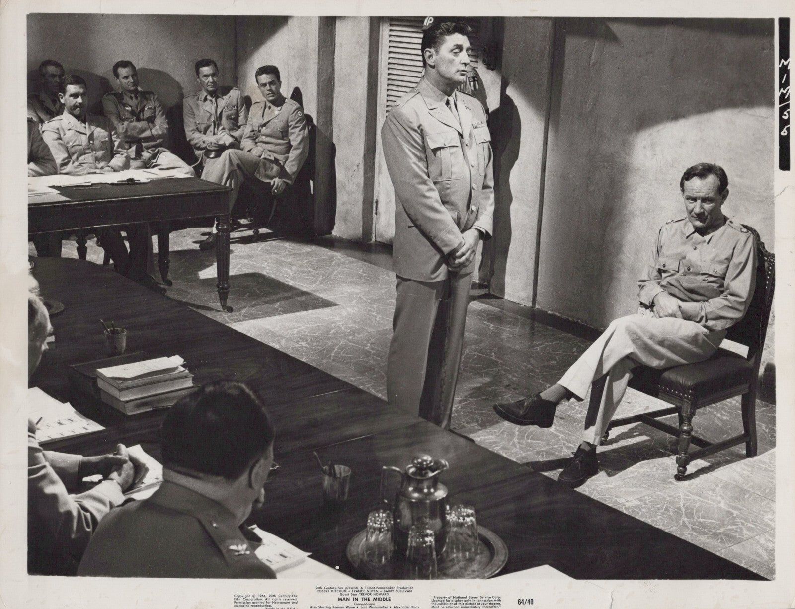 Robert Mitchum photo, The Winston Affair 1964 photograph, Man in the Middle memorabilia, vintage Hollywood collectible, classic war film photo, rare Robert Mitchum collectible, Golden Age of Hollywood photography, courtroom drama movie still.