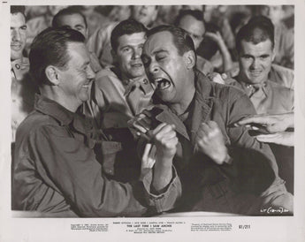 Celebrate the comedic brilliance of Robert Mitchum and Jack Webb in this vintage movie still from The Last Time I Saw Archie (1961). Directed by Jack Webb himself, this quirky military comedy brings together two Hollywood legends in a lighthearted tale of mischief and camaraderie during World War II.