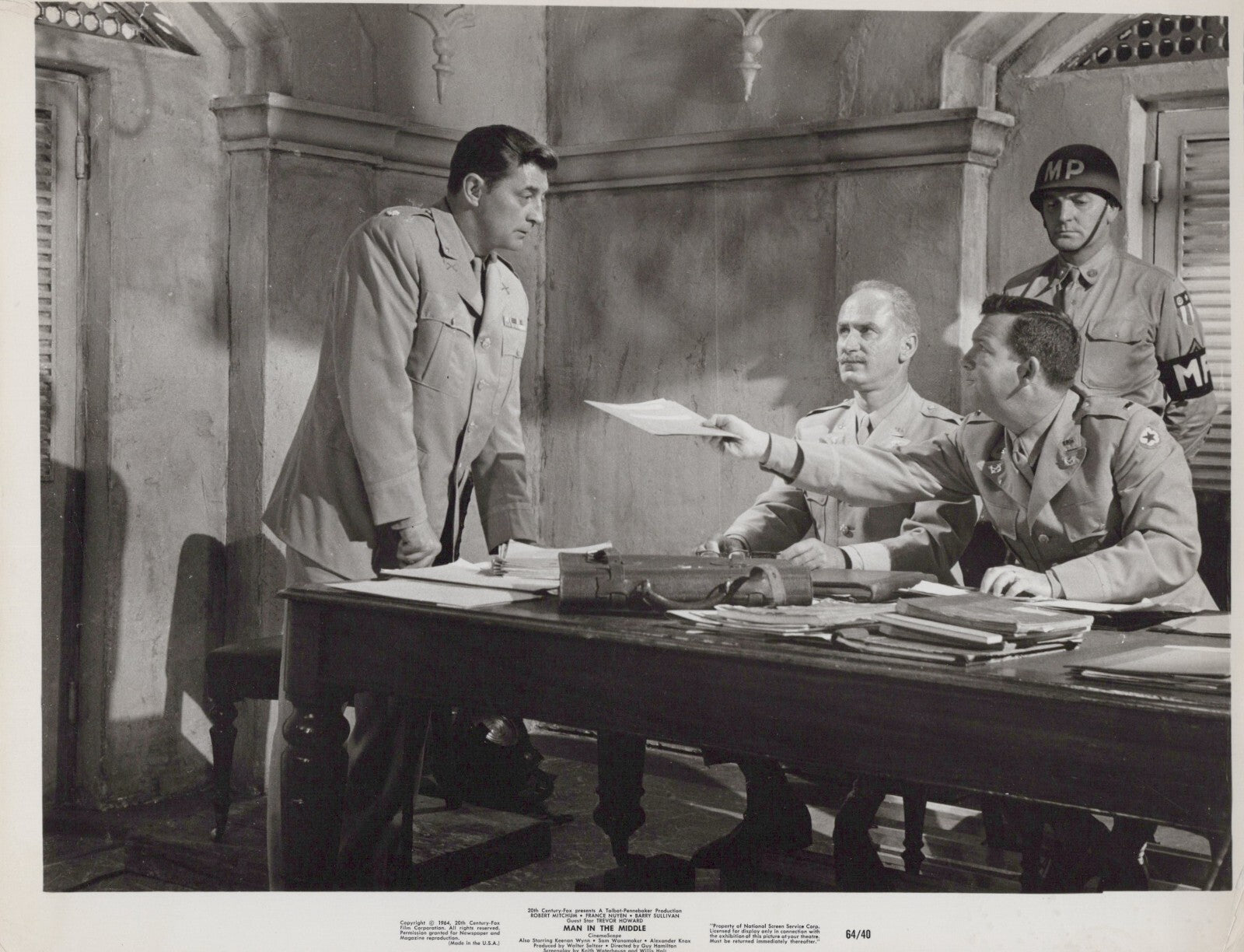 Robert Mitchum The Winston Affair photo, Trevor Howard Man in the Middle still, 1964 war drama memorabilia, vintage courtroom movie stills, Hollywood legends collectibles, classic Robert Mitchum photos, rare Trevor Howard image, The Winston Affair production still, WWII courtroom drama, collectible movie memorabilia.