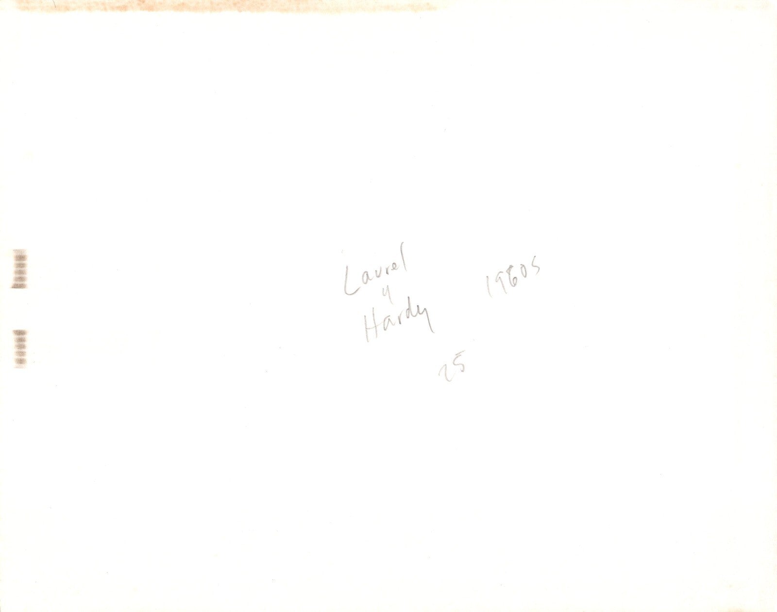 Keywords: Laurel and Hardy, Stan Laurel, Oliver Hardy, classic comedy photo, 1960s Hollywood memorabilia, vintage studio portrait, rare comedy duo collectible, slapstick legends, timeless humor.