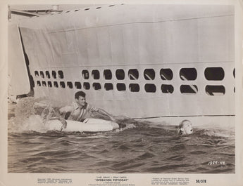 This rare vintage photograph features the charming Tony Curtis in a memorable scene from the 1959 classic comedy Operation Petticoat. Known for its delightful blend of humor and romance, this film showcases Tony Curtis in one of his most iconic roles. The photograph captures his signature wit and charm, making it a must-have for fans of 1950s cinema and classic Hollywood comedy.