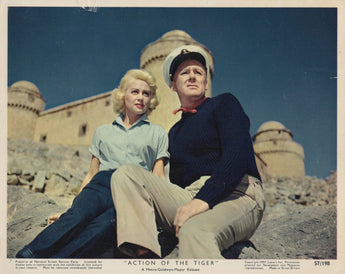 Dive into the thrilling world of 1950s adventure cinema with this rare vintage photograph featuring Van Johnson and Martine Carol in Action of the Tiger (1957). Directed by Terence Young, this action-packed film tells the story of a man searching for his kidnapped wife, set against the stunning backdrop of the Mediterranean. With Johnson in the lead and Carol as his captivating co-star, the film blends suspense, romance, and exotic locations into a memorable adventure.