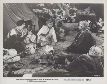 Victor Mature Zarak photo, Bernard Miles 1956 film memorabilia, Peter Illing vintage movie still, Technicolor adventure movie collectibles, classic Hollywood photography, Golden Age cinema treasures, rare epic drama photos, vintage Zarak images, Victor Mature film collectibles, 1950s action-adventure films.