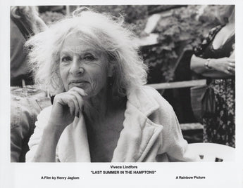 Own a piece of 90s film history with this original promotional photograph featuring the legendary Viveca Lindfors in the 1995 drama Last Summer in the Hamptons. In this unique film, Lindfors plays a central role amidst a complex and emotionally charged storyline. This vintage photo captures her striking presence, showcasing the elegance and depth that made her a standout actress of her generation.