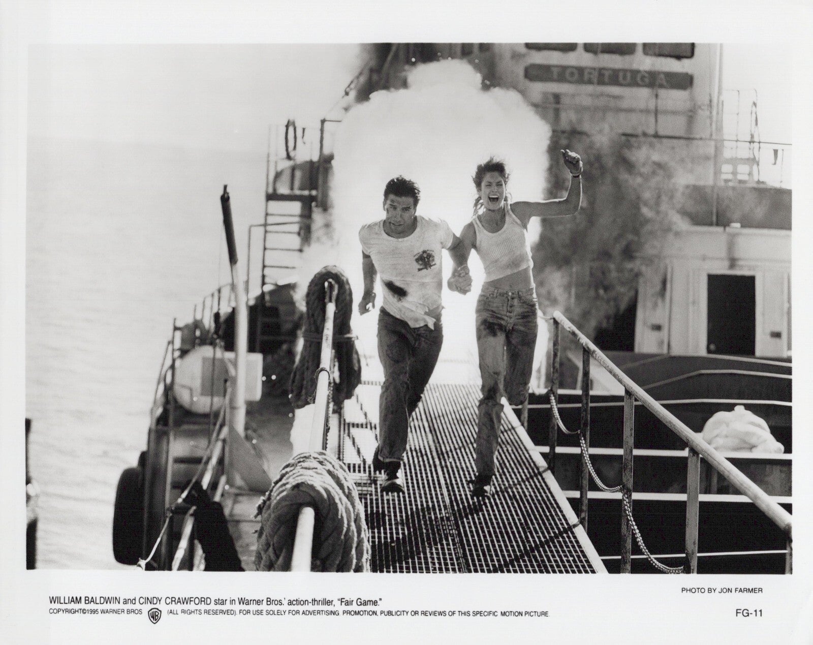 Keywords: William Baldwin, Cindy Crawford, Fair Game (1995), action thriller, movie debut, high-octane action, 90s cinema, dramatic stunts, movie memorabilia, star chemistry.