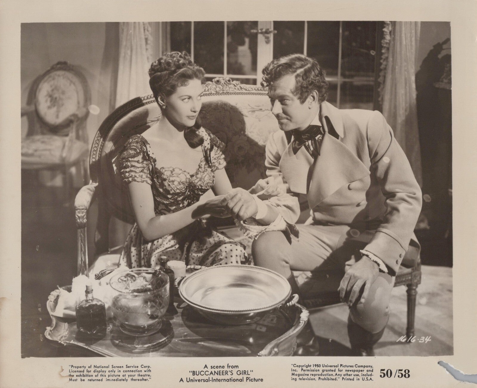 Authentic Hollywood Memorabilia: This is an original 1950 movie still from Buccaneer's Girl, not a modern reproduction.