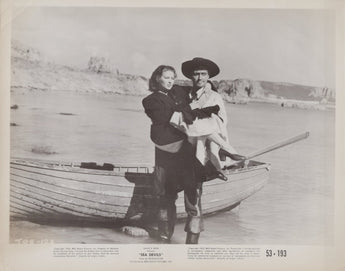 Step back into the thrilling world of high-seas adventure with this rare vintage photograph featuring the dazzling Yvonne De Carlo and the charismatic Rock Hudson in Sea Devils (1953). Set against the dramatic backdrop of the Napoleonic Wars, this swashbuckling tale of spies, romance, and daring missions captures the dynamic chemistry between De Carlo and Hudson, two of Hollywood's brightest stars.