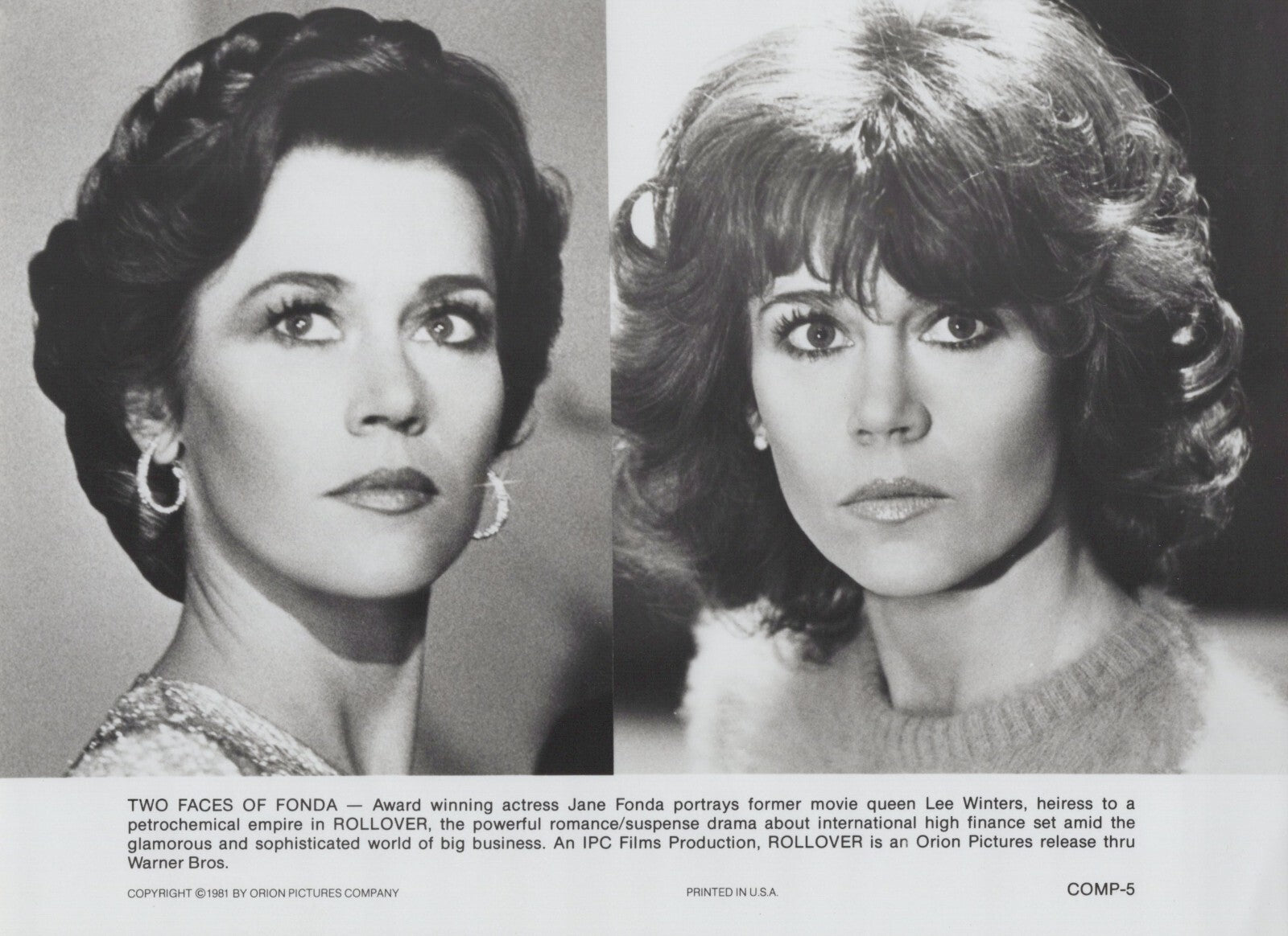Jane Fonda in Rollover (1981) ❤ Stunning Portrait - Hollywood beauty Photo K 248