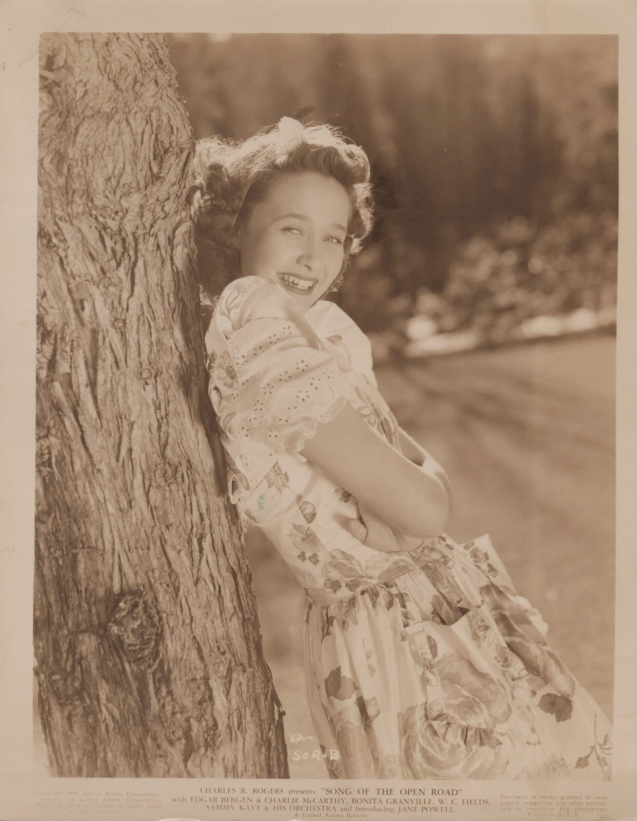A vintage photo showcasing Jane Powell's beauty and elegance from 1944.