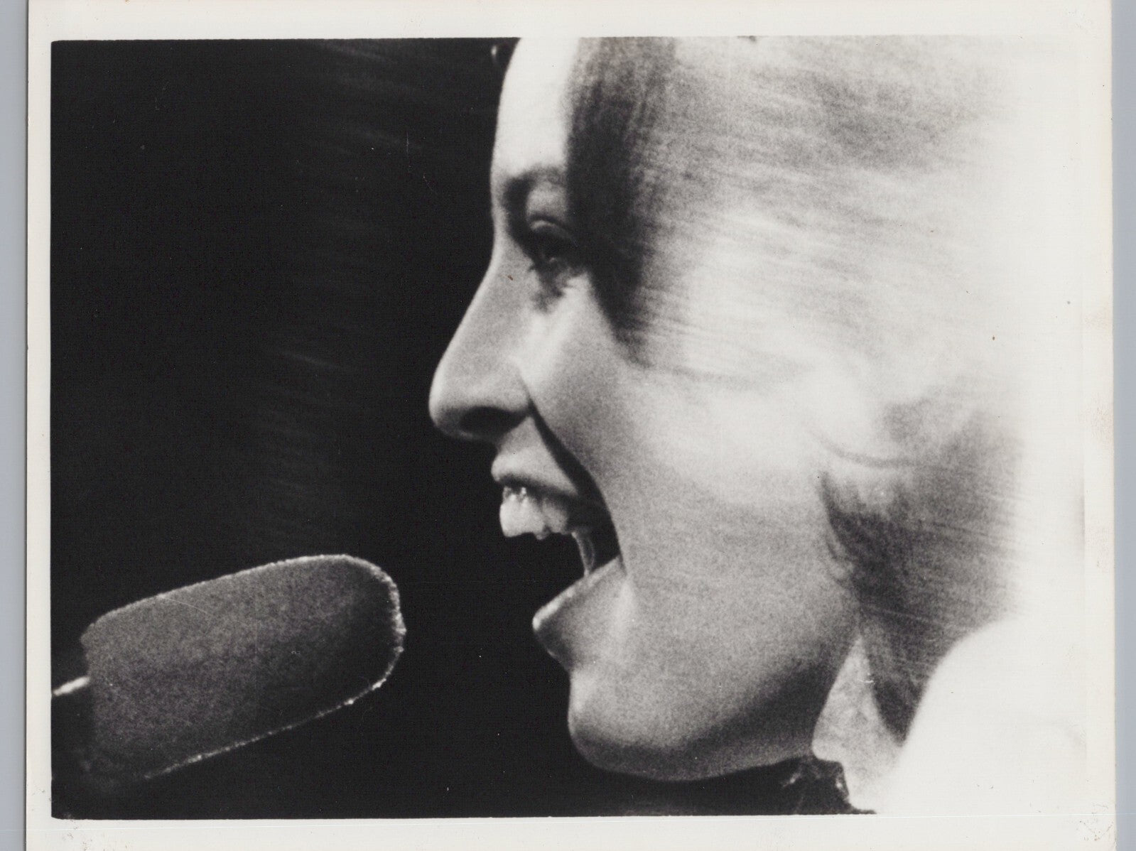 This captivating black and white photograph captures the essence of Hollywood glamour, featuring a stunning portrait of legendary actress and musician Joan Baez. The 10 x 8 inch gelatin-silver print is an original production from the United States, dating back to the 1970s. The image showcases Baez in a captivating pose, along with a beautiful production technique that highlights her beauty and talent. This rare and collectible item is perfect for fans of Hollywood, movies, and celebrities, and would make an excellent addition to any collection.