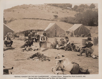 This vintage black and white gelatin-silver print photograph measures 10 x 8 inches and features actors Lane Chandler, Reed Howes, Fuzzy Knight, and Earle Hodgins. The photo was taken in 1943 during the production of a Hollywood movie, and captures a scene with the four actors. The image is an original, licensed reprint and is in excellent condition. It would make a great addition to any collection of movie memorabilia or vintage photographs. The photograph is printed on paper and is a single piece for sale.