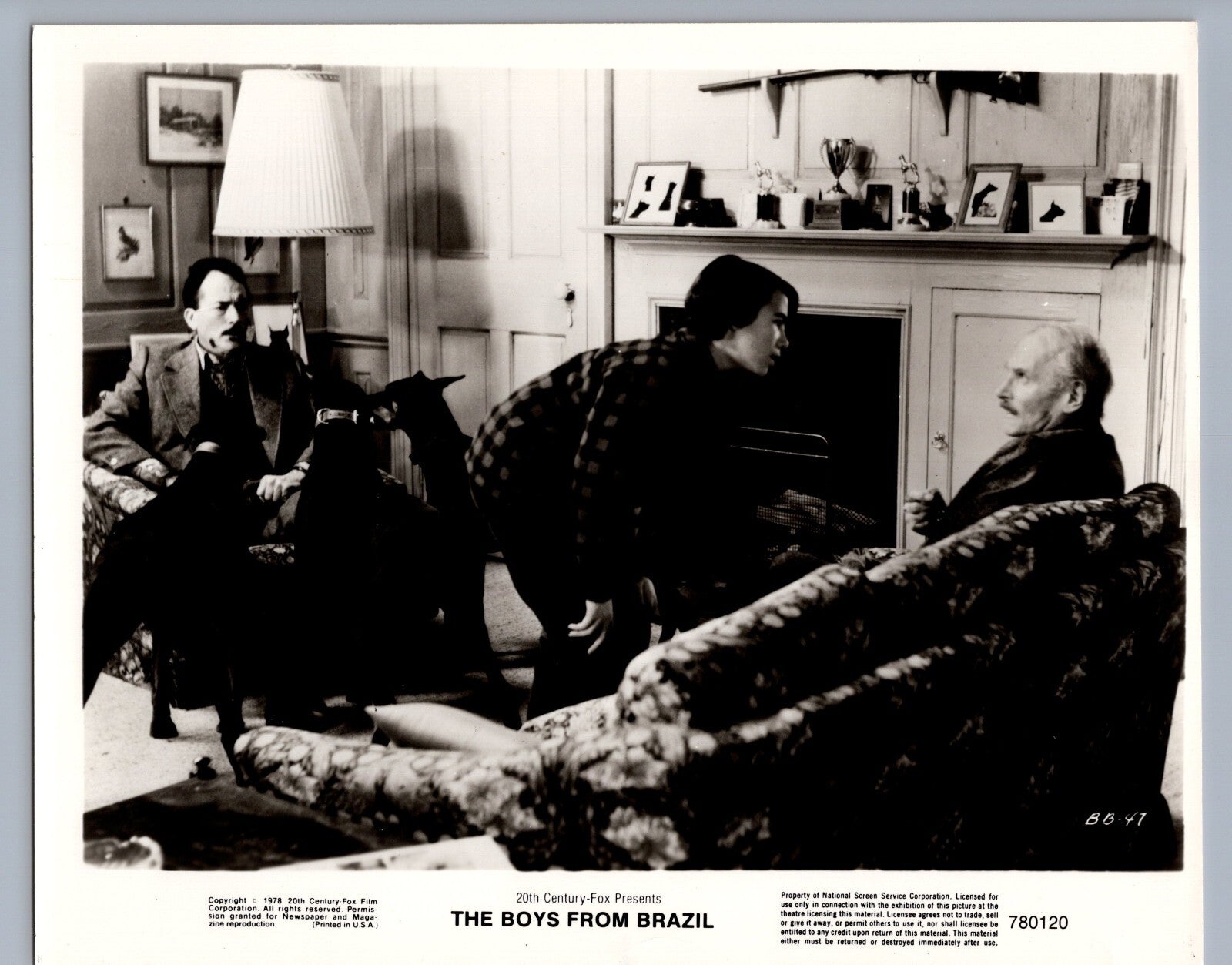 Laurence Olivier Gregory Peck Boys from Brazil 1978 Photo, Original Movie Still Collectible, Cinematic Legends Convergence, Rare Film Snapshot, Vintage Actor Photography, Laurence Olivier Gregory Peck Performance Still, Hollywood Golden Era Thriller Collectible.