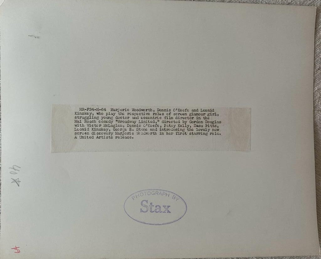 "Marjorie Woodworth, Dennis O'Keefe, Leonid Kinskey (1941) β€β Rare Stax Vintage Hollywood Photo - Classic Cinema Collectible"