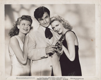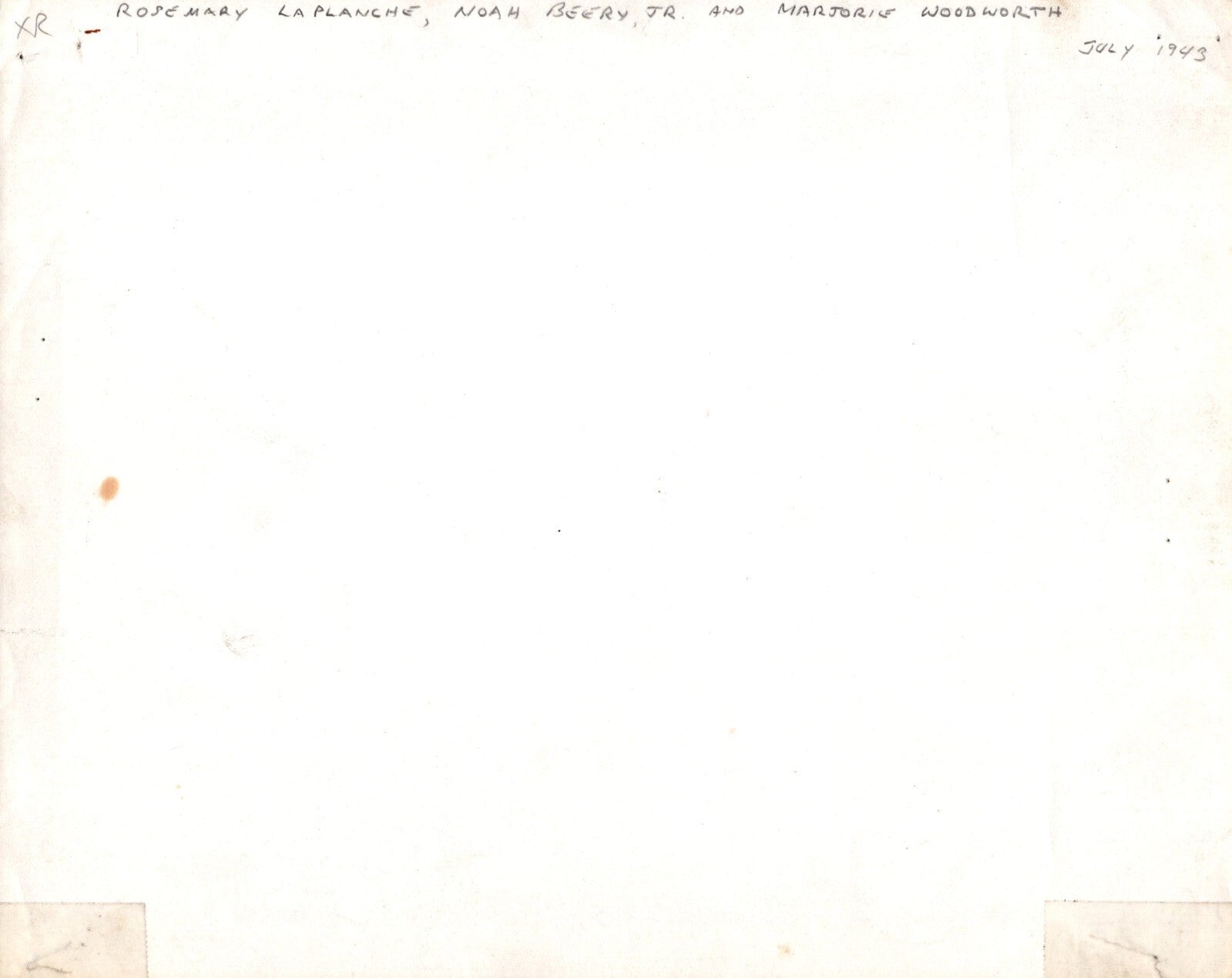 This is an original black and white gelatin-silver print photograph from 1942 featuring actresses Rosemary La Planche and Marjorie Woodworth and actor Noah Beery Jr. The photograph measures 10 x 8 inches and is in excellent vintage condition. It would make a great addition to any collection of Hollywood memorabilia or vintage photographs. The photograph is an authentic piece of movie history and is sure to be treasured by any fan of classic cinema.
