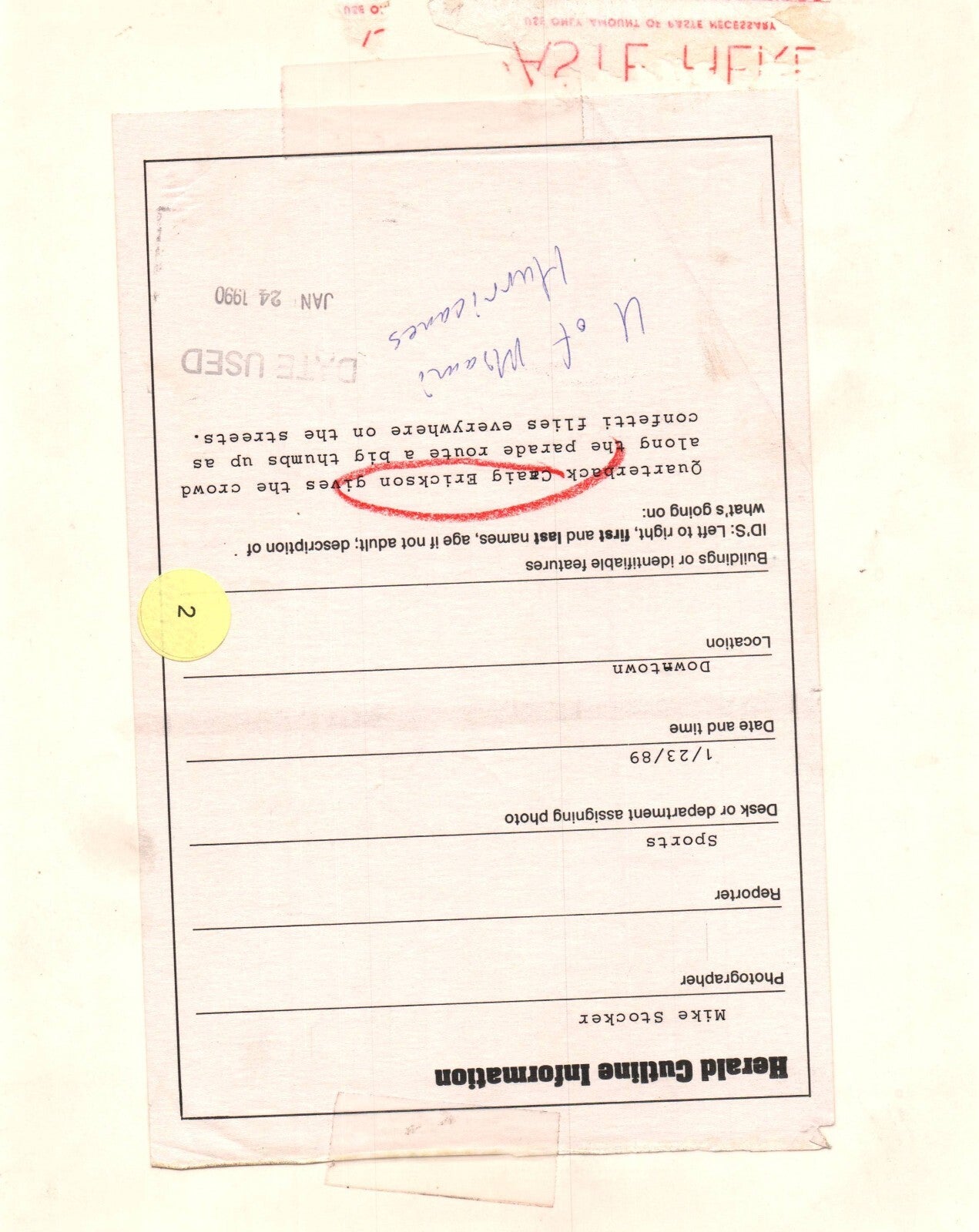 Miami Hurricanes Football Quarterback Craig Erickson PORTRAIT ORIG PHOTO 873