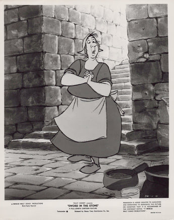 Capture a piece of Hollywood history with this original gelatin-silver print photograph of a movie scene from The Sword in the Stone (1963). Measuring 8 x 10 inches, this black and white photo features actors and actresses in character, adding to the charm of any collection.