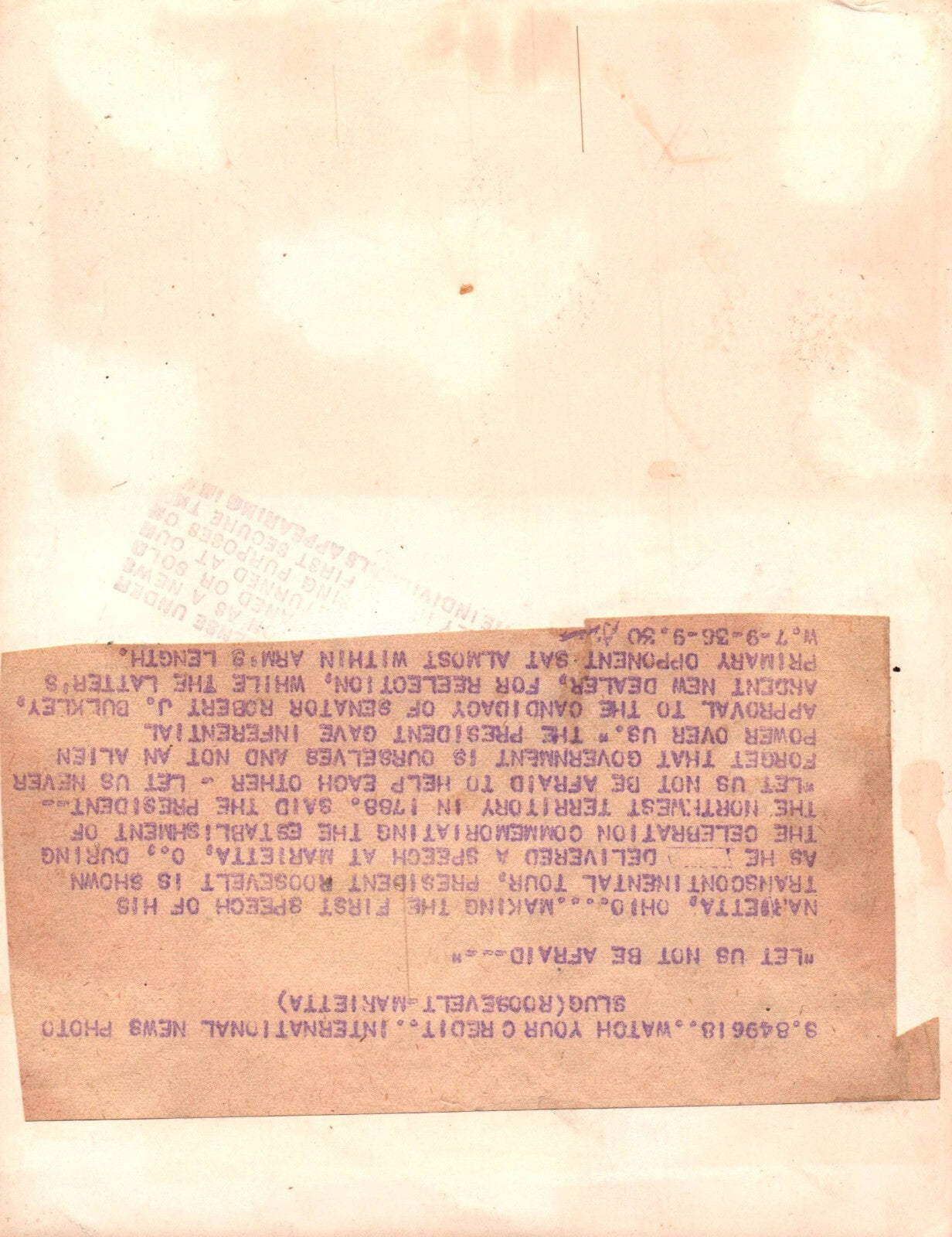 RARE US PRESIDENT ROOSEVELT OHIO SPEECH PORTRAIT 1936 ORIG PRESS PHOTO 59