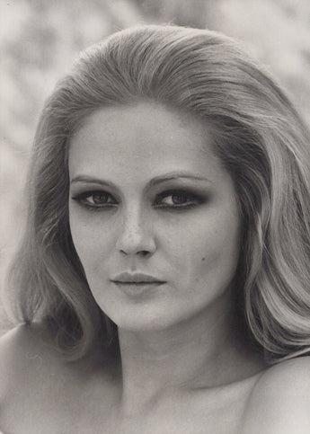 This black and white 5 x 7 inch gelatin-silver print photograph features Serbian-Italian actress Beba Loncar in a classic Hollywood pose. The photo was produced in 1970 and is an original, licensed reprint. Loncar is known for her work in a variety of films and this particular image captures her beauty and charisma. It would make a great addition to any collection of movie memorabilia or vintage photographs. The photo was produced in the United States using high-quality paper and production techniques.