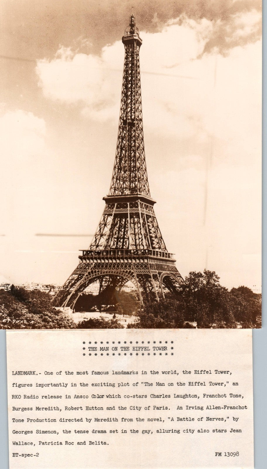 The Man on the Eiffel Tower (1949) ❤ Vintage Hollywood Photo 963K