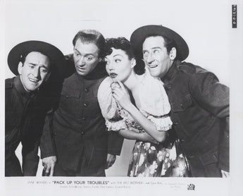 🎥 About "Pack Up Your Troubles": The film weaves a heartwarming narrative of family, laughter, and comedic brilliance, with The Ritz Brothers and Lynn Bari at the center of an unforgettable story. This vintage film photo pays homage to the film's enduring appeal and the exceptional talent of its actors. Owning it means possessing a piece of cinematic history.