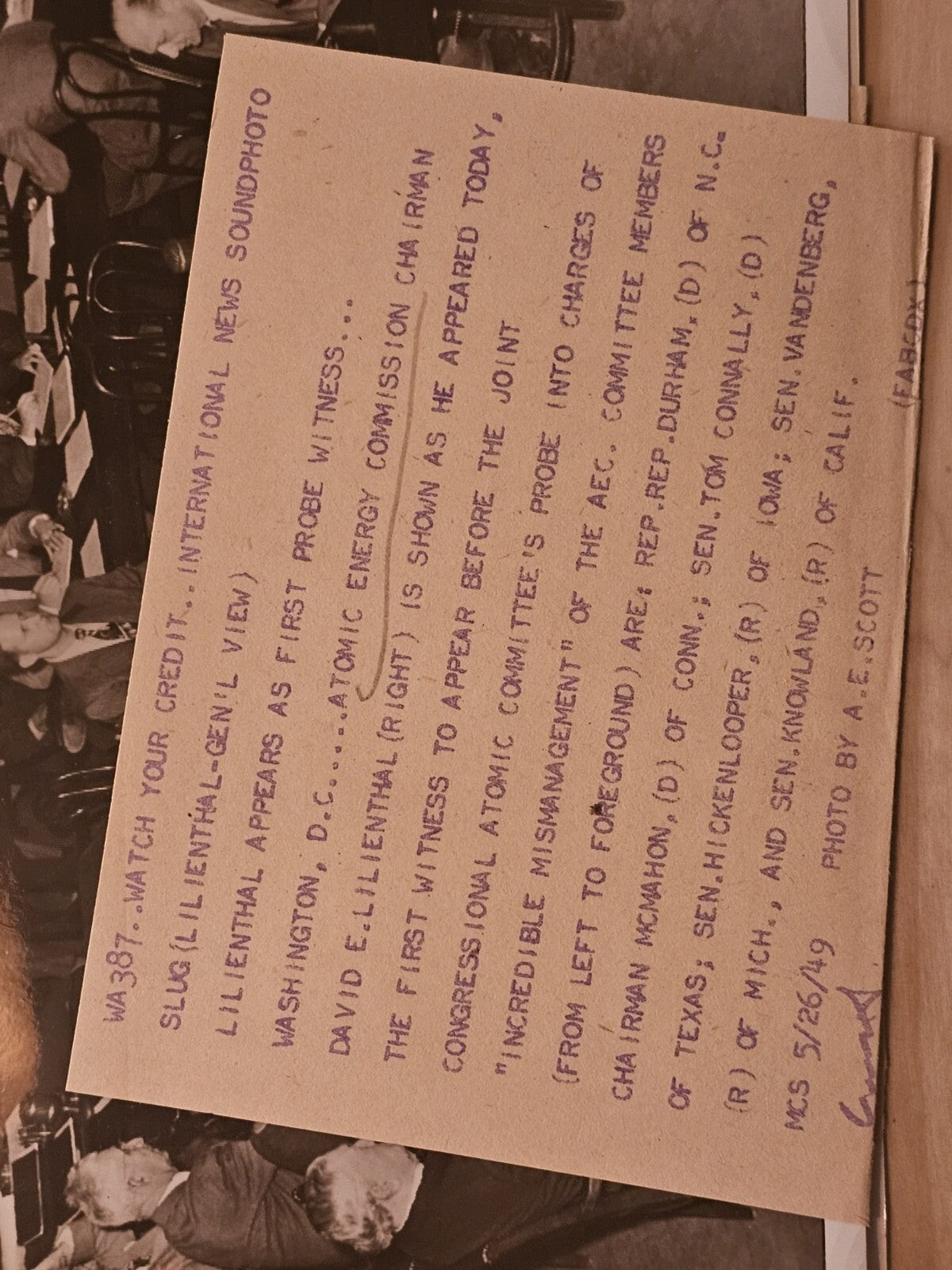 US ATOMIC ENERGY COMMISSION 1949 CHAIRMAN LILIENTHAL PRESS ORIG PHOTO 873