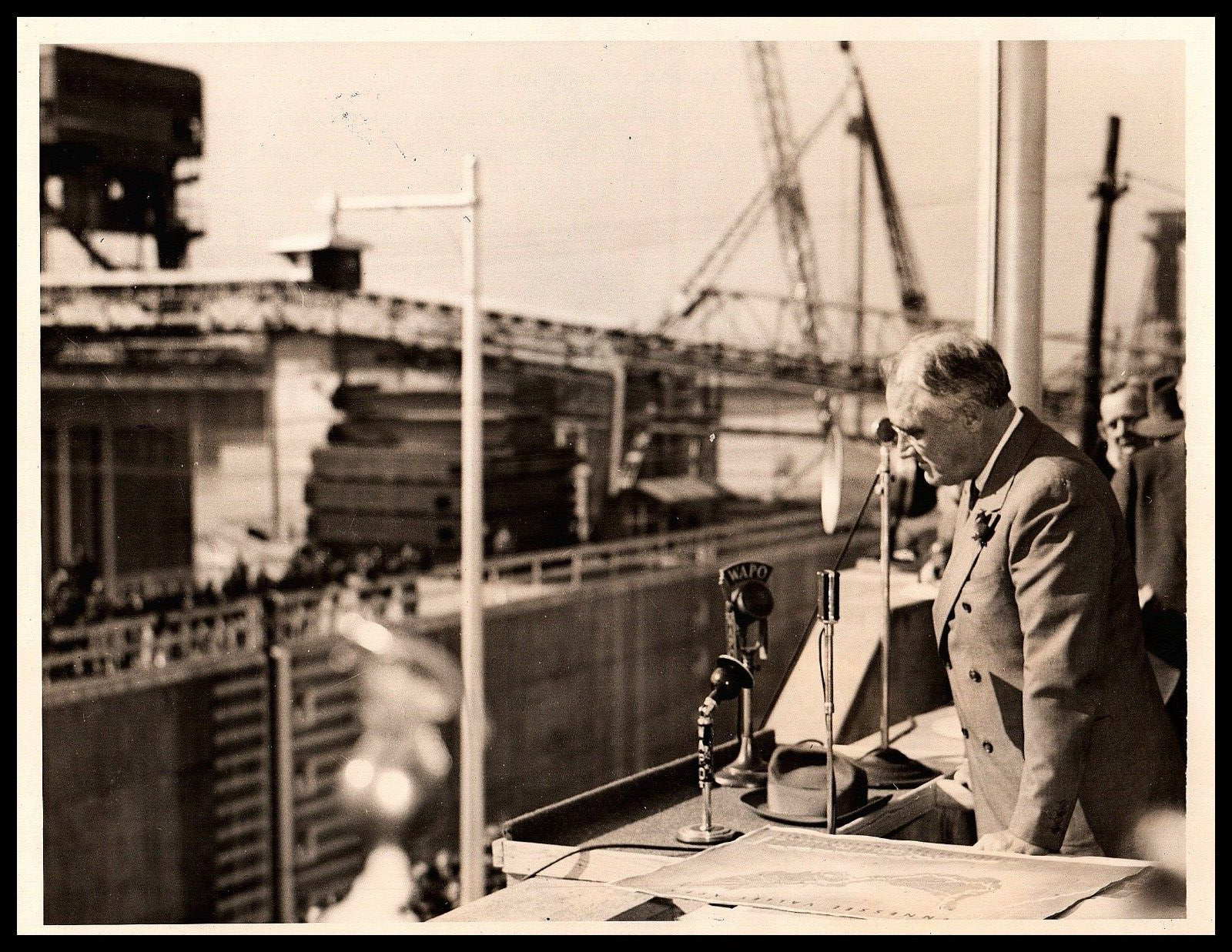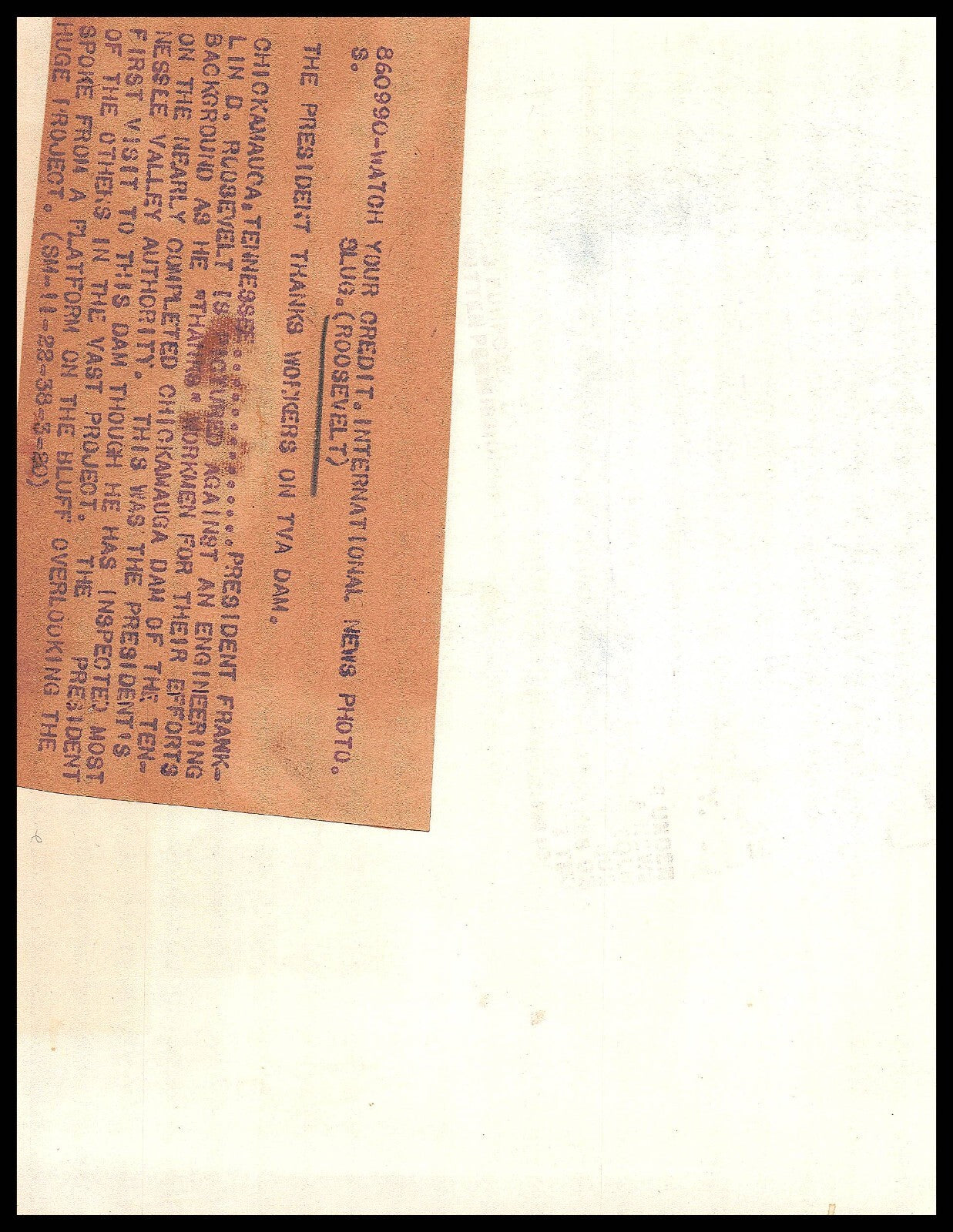 US PRESIDENT FRANKLIN DELANO ROOSEVELT 1938 THANKS WORKERS TVA DAM ORIG PHOTO S2