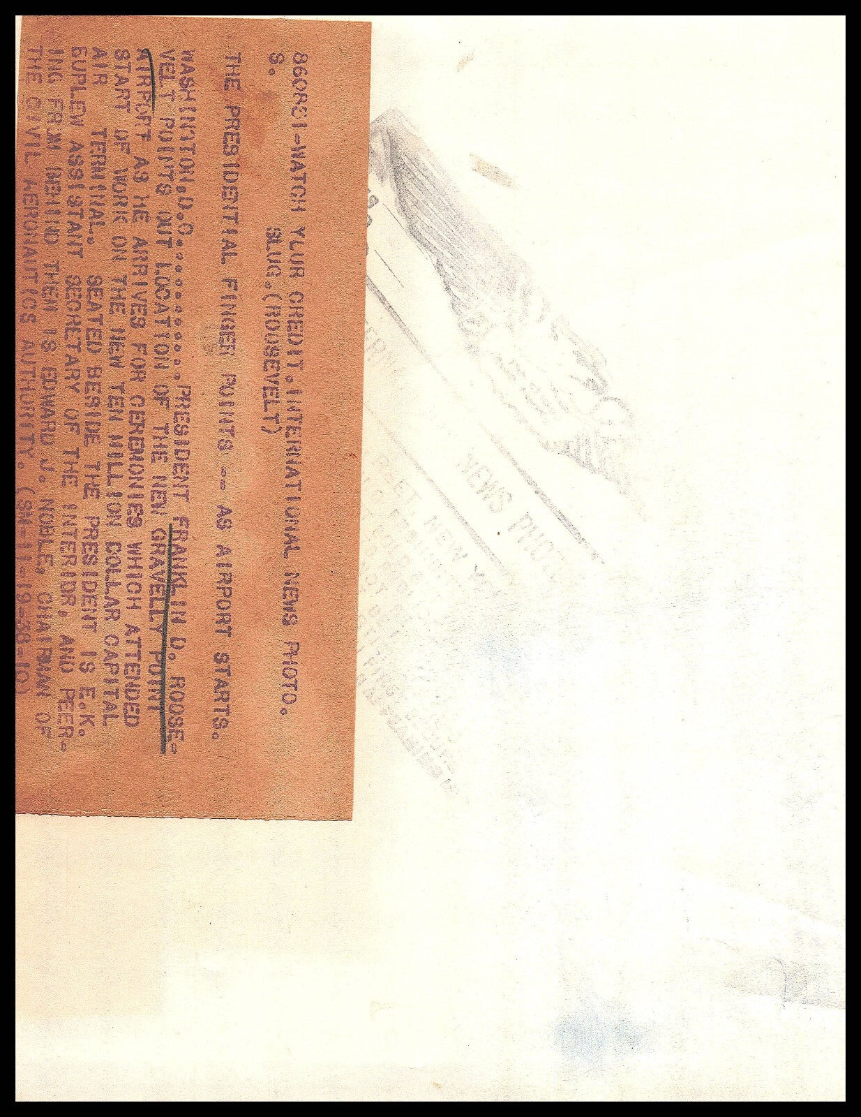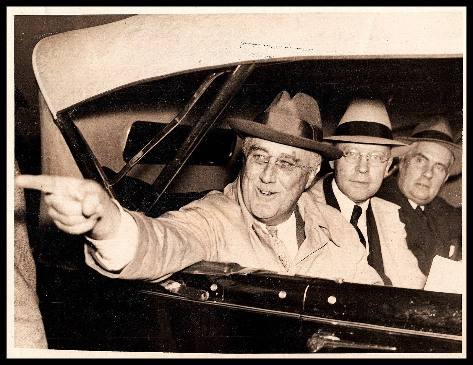 US PRESIDENT FRANKLIN DELANO ROOSEVELT FINGER POINTS AIRPORT 1938 ORIG PHOTO S2