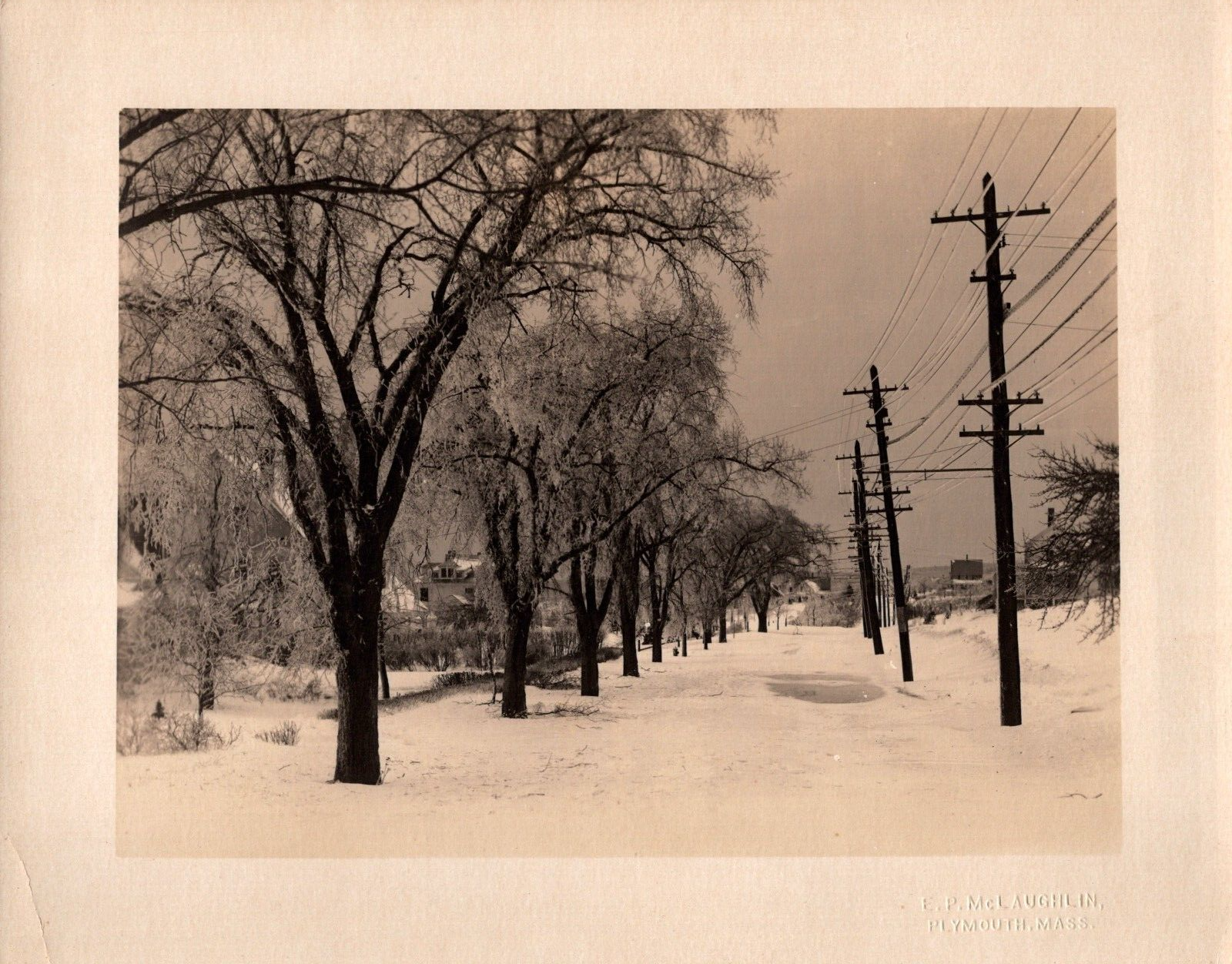 VINTAGE AMERICAN OLD TOWN WARREN AVE SNOWY DAY 1930s E P McLAUGHLIN Photo Y 414