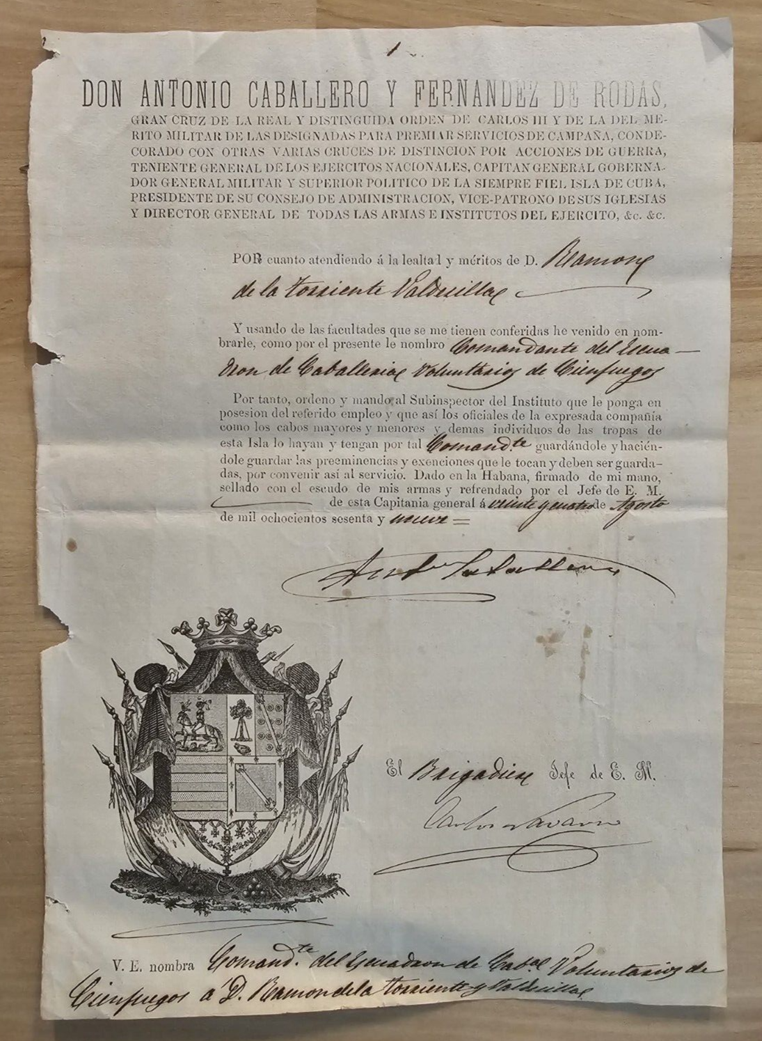 1869 SPAIN MERIT MEDAL GRAND CROSS ORDER APPOINTMENT CAVALRY COMMANDER SPAN AM