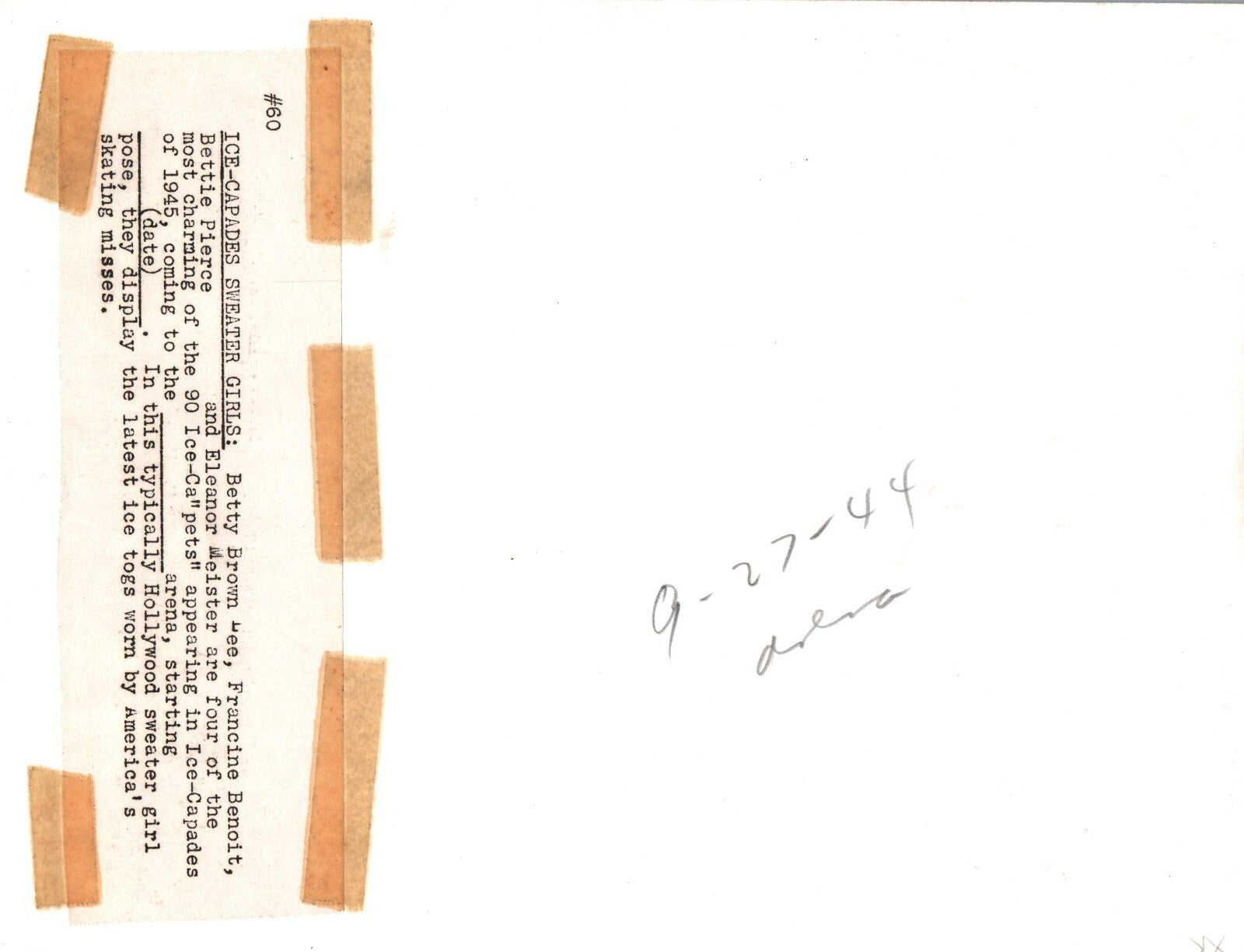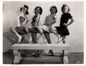 Capture the glamour and mystique of Hollywood with this original vintage photograph featuring actresses Eleanor Meister, Bettie Pierce, Betty Brown Lee, and Francine Benoit. This black and white gelatin-silver print, produced in the United States in the 1940s, measures 10 x 8 inches and has a glossy finish. The unframed picture showcases the beautiful women in their movie roles, and is perfect for collectors or fans of classic Hollywood cinema.
