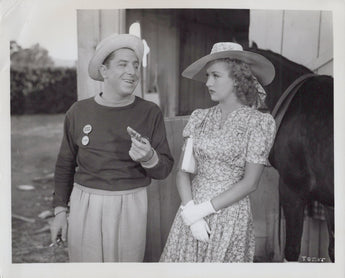 Step back into the world of classic Hollywood with this original vintage photograph featuring the iconic Betty Grable and comedic star Joe Penner from the 1939 comedy The Day the Bookies Wept. This charming black-and-white promotional photo captures the humor and wit that made this film a delightful hit. Directed by Leslie Goodwins, the movie blends Grable's star power and Penner's unique comedic style, making it a standout from the era's comedies.