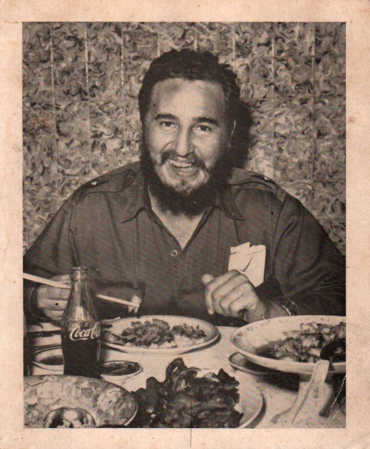 CUBA CUBAN LEADER FIDEL CASTRO DRINKING COCA COLA SODA 1960s VINTAGE PHOTO MA5