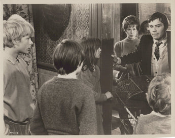 This vintage photograph features actors Dirk Bogarde and Yootha Joyce in a black and white image measuring 10 x 8 inches. The photograph is an original gelatin-silver print produced in the United States in 1967, featuring the two actors in the movie "Our Mother's House." The subject of the photograph is Hollywood celebrities, specifically actors and actresses, and is considered an antique. The image color is black and white and the material is paper. This collectible is a single piece and is perfect for any movie or Hollywood enthusiast.