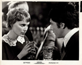 This vintage black and white photograph measures 10 x 8 inches and features actors Dustin Hoffman and Mia Farrow in the 1969 film "John and Mary". The photograph is an original gelatin-silver print from the United States and showcases the two actors in their roles. The image is in good overall condition and would make a great addition to any collection of Hollywood memorabilia. It is a single piece and not a licensed reprint. This rare piece is perfect for any fan of the film or the actors involved.