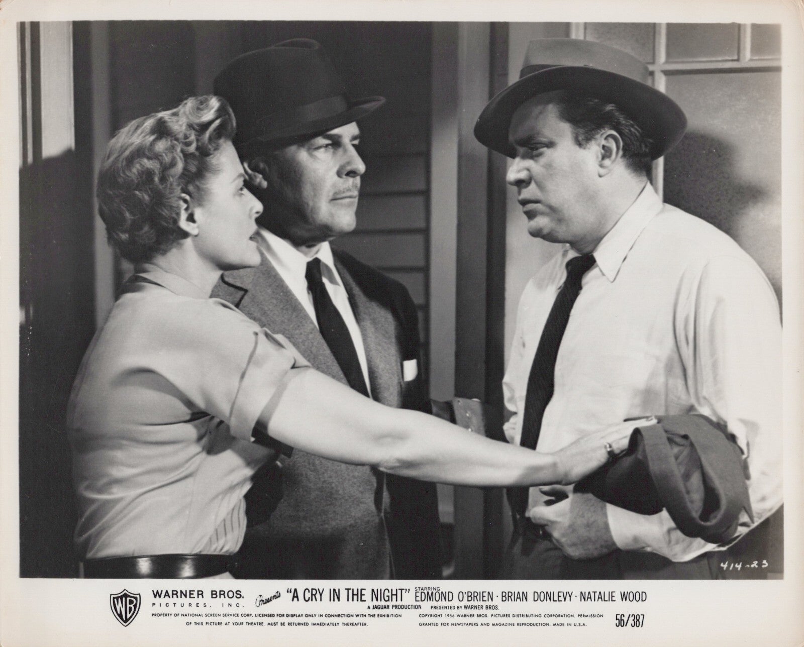 Keywords: Edmond O’Brien A Cry in the Night 1956 photo, Natalie Wood film noir, vintage thriller collectible, rare Hollywood memorabilia, 1950s noir photography, Frank Tuttle film, suspense movie still, detective thriller, original movie photo, classic Hollywood collectibles.