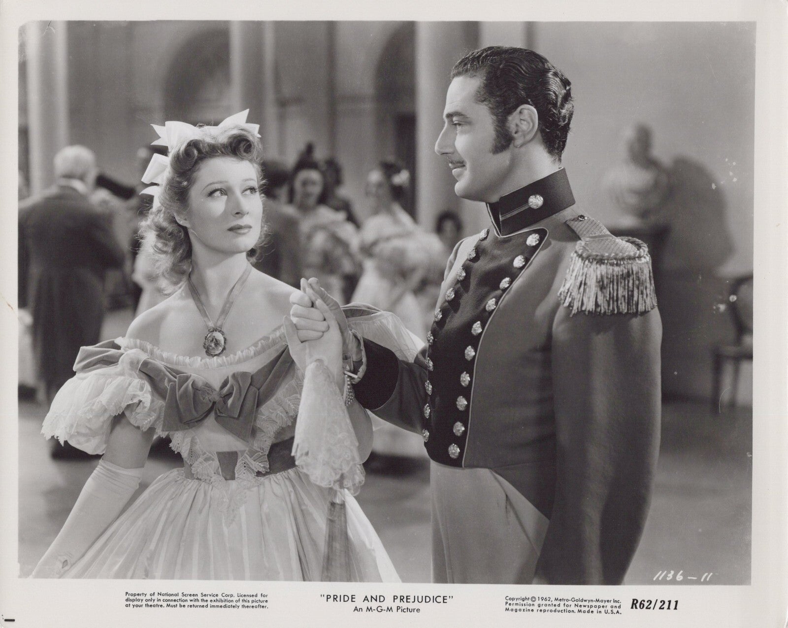 Keywords: Edward Ashley Pride and Prejudice 1940, Greer Garson, vintage period drama photography, classic Hollywood memorabilia, 1940s film collectibles, Jane Austen adaptation, Mr. Wickham and Elizabeth Bennet, rare movie prints, Pride and Prejudice film print.