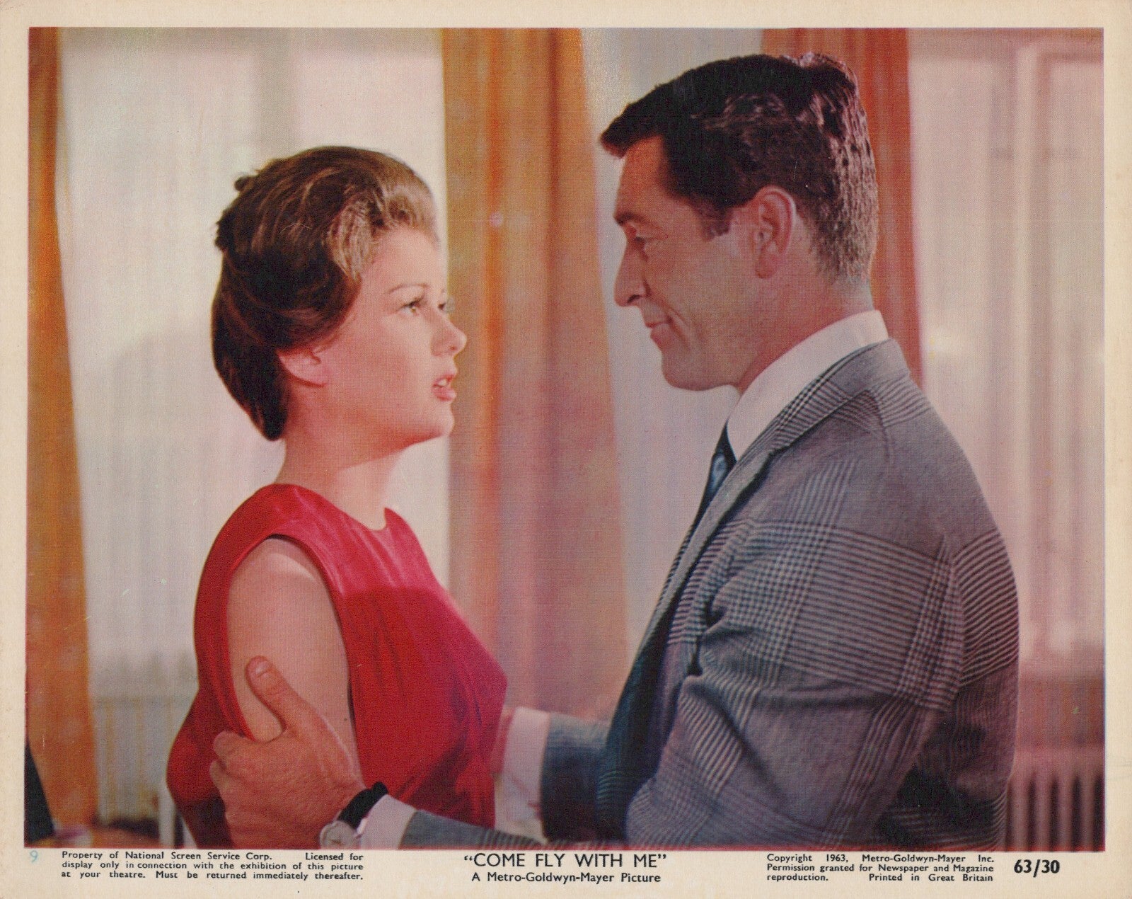 Rare Original Hugh O'Brian & Pamela Tiffin in "Come Fly with Me" (1963) Vintage Movie Photograph – Classic 1960s Romantic Comedy Collectible