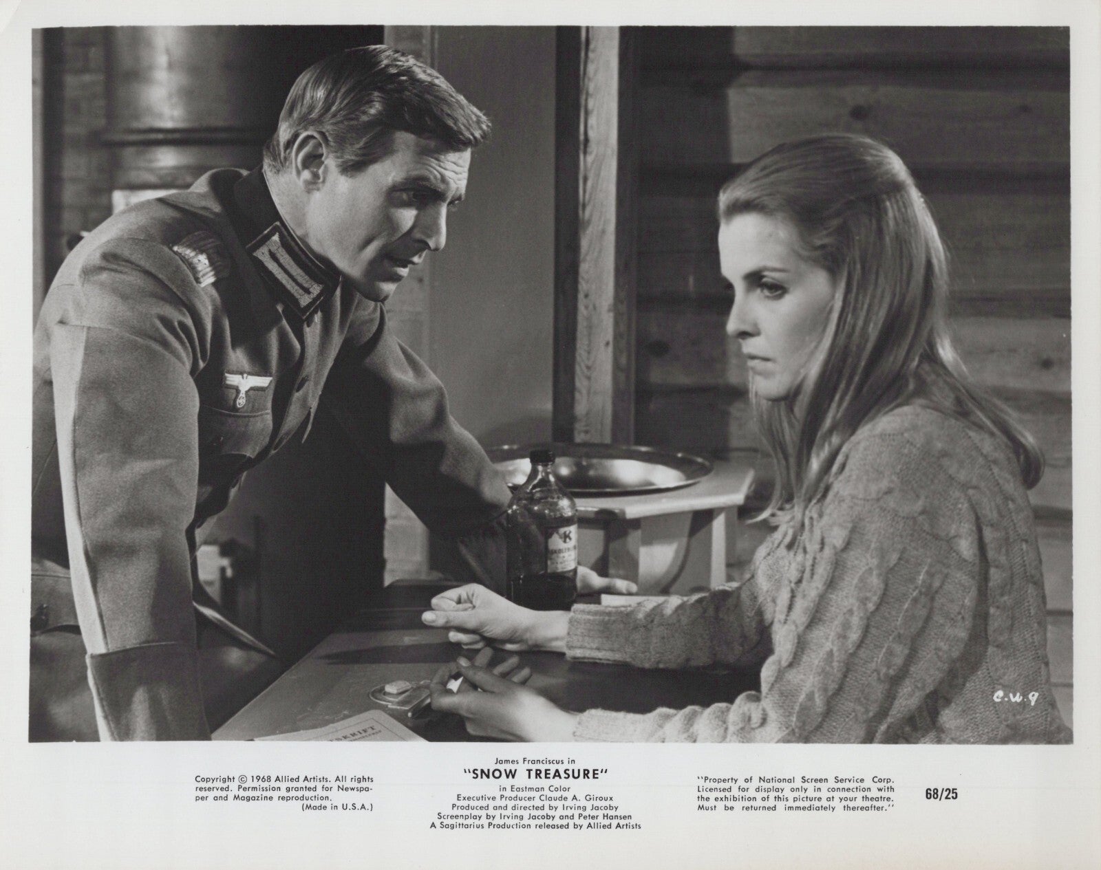 James Franciscus Snow Treasure photo, Ilona Rodgers 1968 movie still, WWII adventure film collectible, vintage Hollywood war drama photo, Snow Treasure 1968 collectible, classic WWII-era movie photo, James Franciscus and Ilona Rodgers photo, original movie still, vintage adventure film memorabilia, Snow Treasure film adaptation photo.