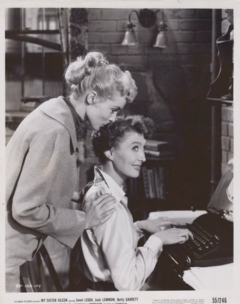 Immerse yourself in the heartwarming camaraderie of classic cinema with this vintage photo featuring the delightful pairing of Janet Leigh and Betty Garrett in 'My Sister Eileen' (1955). Preserving a moment of timeless friendship and laughter, this collectible piece captures the charm and joy of two iconic actresses. Elevate your collection with this enchanting portrayal of camaraderie frozen in a classic cinematic frame.