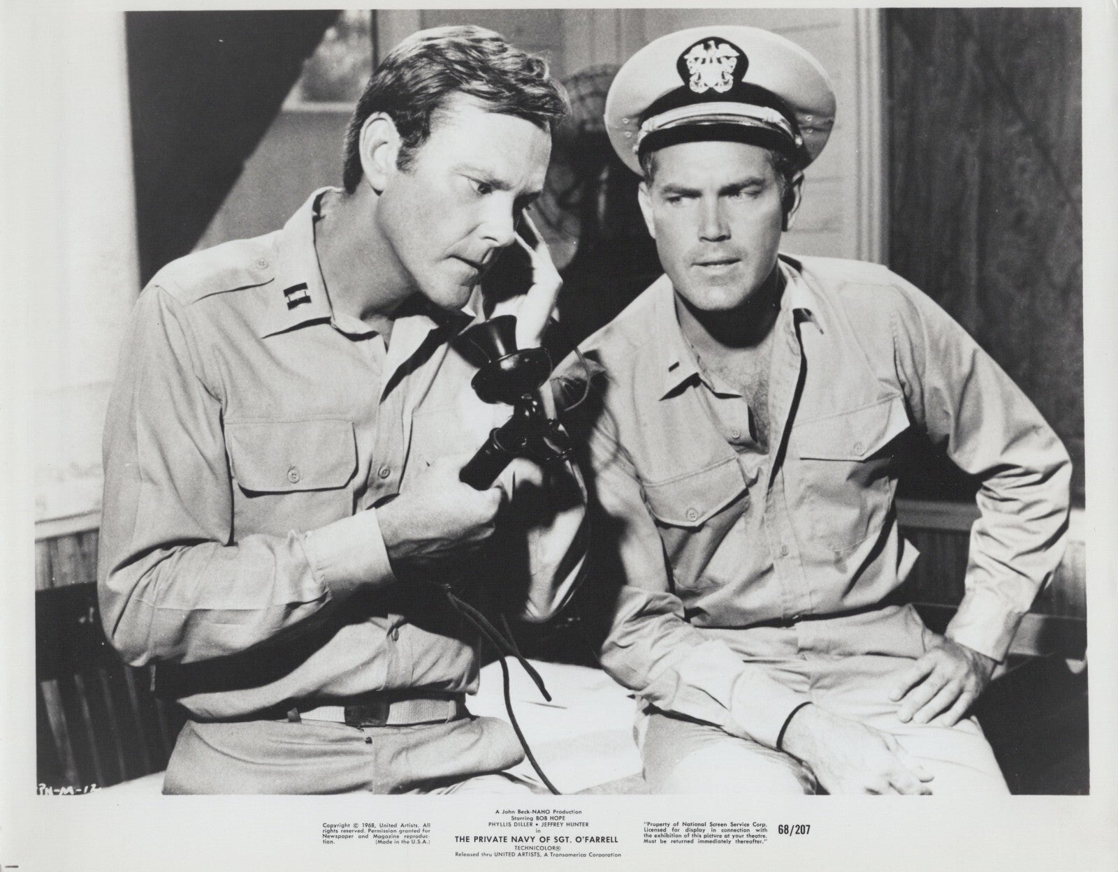 Capture a piece of cinematic history with this rare collectible photo of Jeffrey Hunter in The Private Navy of Sgt. O'Farrell. Buy now and add a touch of classic Hollywood comedy to your collection!
