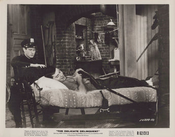 This Hollywood vintage photograph features Jerry Lewis in the role of The Delicate Delinquent, a classic comedy character. The image is printed on high-quality paper in black and white, with a glossy finish. The photograph is an original, produced in 1962 using gelatin-silver print techniques. The image measures 8 x 10 inches and is unframed. It is a single piece, not a collection. The photograph is a perfect addition for collectors of Hollywood memorabilia, vintage photographs, or Jerry Lewis fans. The item is located in the United States and is an authentic piece of Hollywood history.