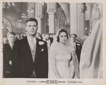 This original vintage photograph features the captivating Laurence Harvey and Heather Sears in the 1958 British drama Room at the Top. A powerful film that explores themes of ambition, love, and class division, Room at the Top earned critical acclaim and cemented its place in British cinema history. Laurence Harvey stars as a determined young man on a path to social success, while Heather Sears portrays his conflicted love interest, adding emotional depth to this poignant tale.