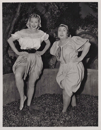 Capture a piece of Hollywood history with this stunning vintage photograph featuring actresses Lucille Ball and Theresa Tirelli in a scene from the 1950s TV show "I Love Lucy." Measuring 7 x 9 inches and printed on glossy paper using the gelatin-silver technique, this original photograph showcases the beloved stars in black and white.