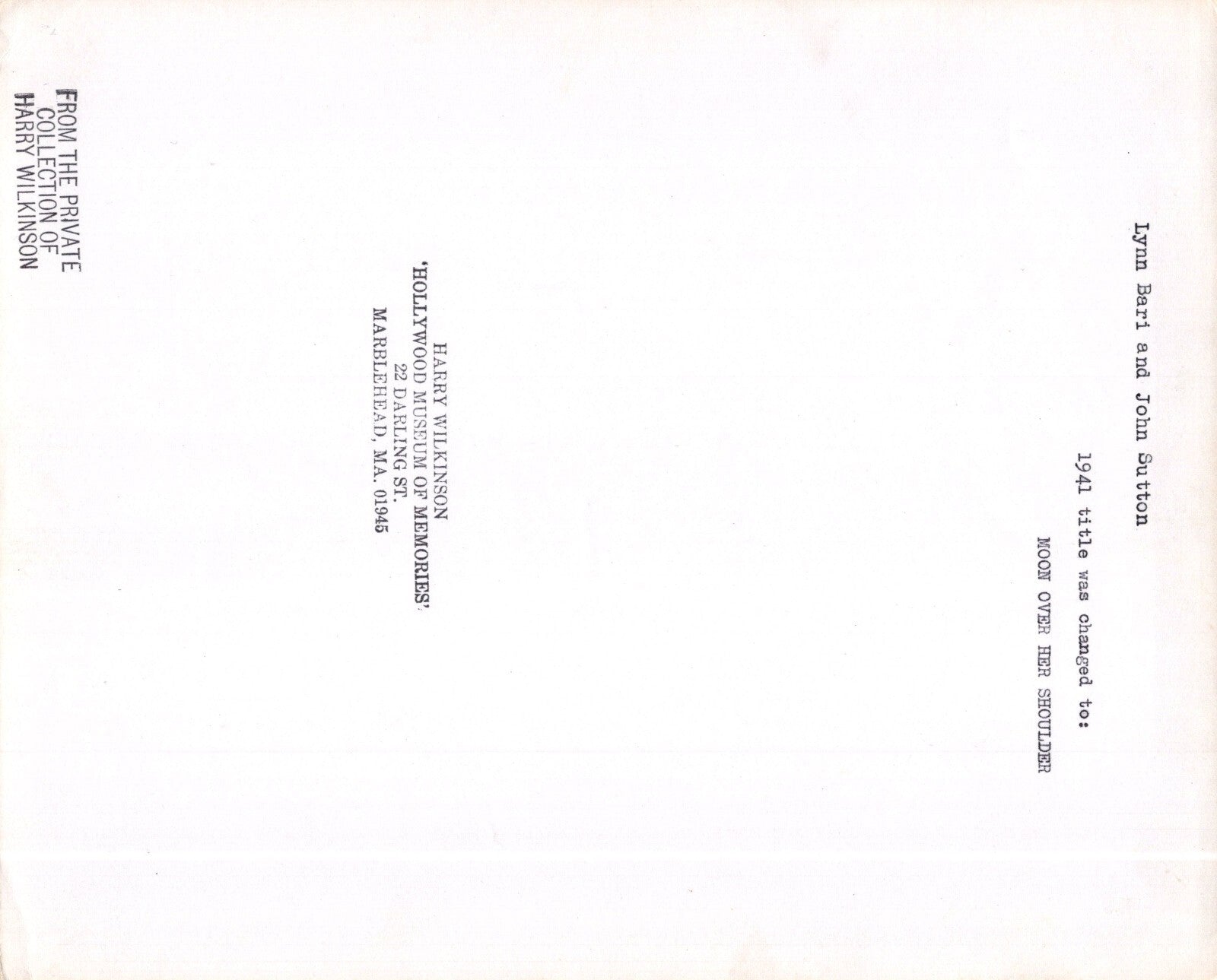 Capture a piece of Hollywood history with this vintage black and white gelatin-silver print photograph. The 10 x 8 inch paper print features actors Lynn Bari and John Sutton in a scene from the 1941 movie "Moon Over Her Shoulder." This original print is a must-have for any collector of Hollywood memorabilia or antique photographs. The image highlights Bari and Sutton, who play the lead roles in this classic Hollywood film. Don't miss out on the chance to own a piece of movie history.