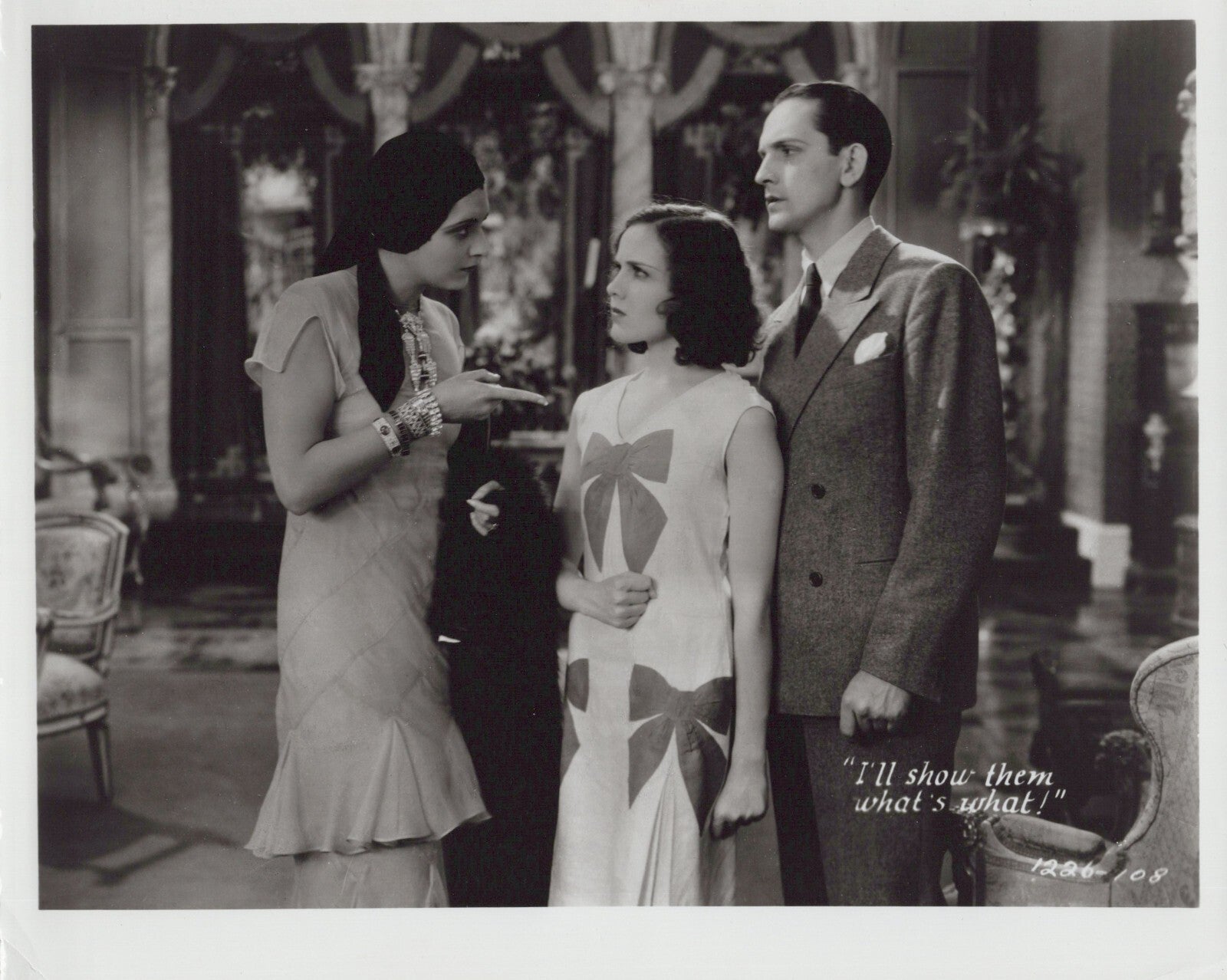 The photograph is unframed and depicts the three actors in a classic Hollywood scene. It is a must-have for any collector of vintage photographs or memorabilia from the golden age of movies. Don't miss your chance to own this rare piece of Hollywood history.