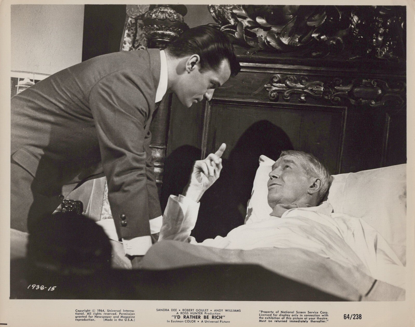 Vintage Movie Still: Authentic 1964 photograph from I'd Rather Be Rich, featuring Maurice Chevalier and Robert Goulet.
