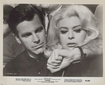 The black and white image depicts the two actors in a scene from the movie, with Melina Mercouri wearing her iconic outfit. The photograph is unframed and sold as a single piece, making it a must-have for any collector of vintage Hollywood memorabilia. This original piece is a great addition to any collection and a perfect way to remember the golden age of Hollywood.