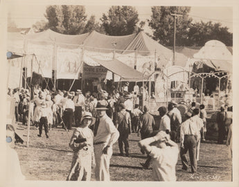 This vintage photograph captures a movie scene from the 1933 film "State Fair". The black and white image measures 8 x 10 inches and is an original gelatin-silver print. The photograph features actresses and actors in Hollywood-themed attire and is a must-have for any movie memorabilia collector.