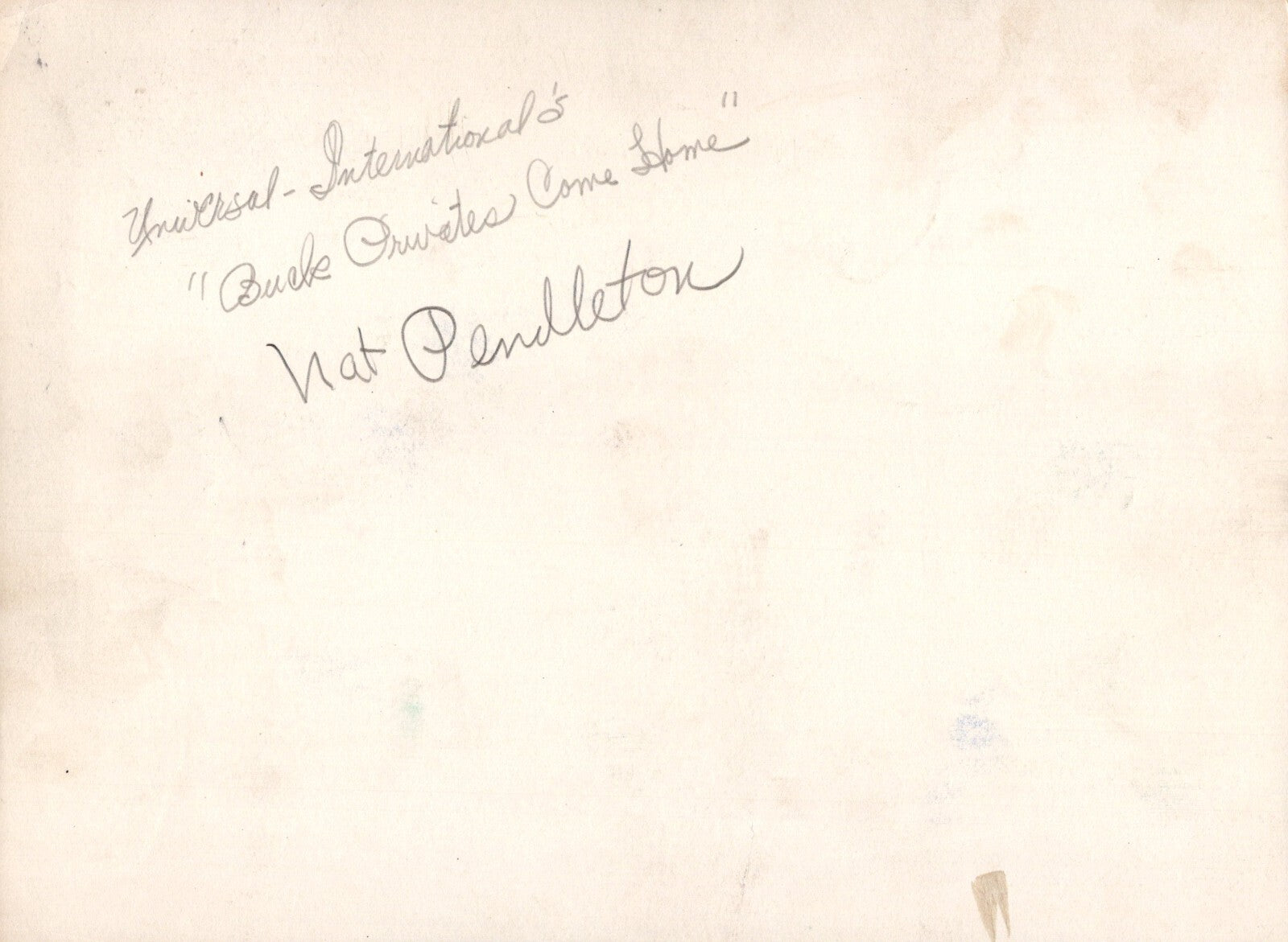 This vintage photograph features the talented actress and singer Nat Pendleton in his iconic role as Buck Privates Come Home. The image measures 7 x 9 inches and is an original gelatin-silver print, produced in the United States in 1947. The photograph is unframed and in black and white, with a glossy finish that adds to its overall charm.