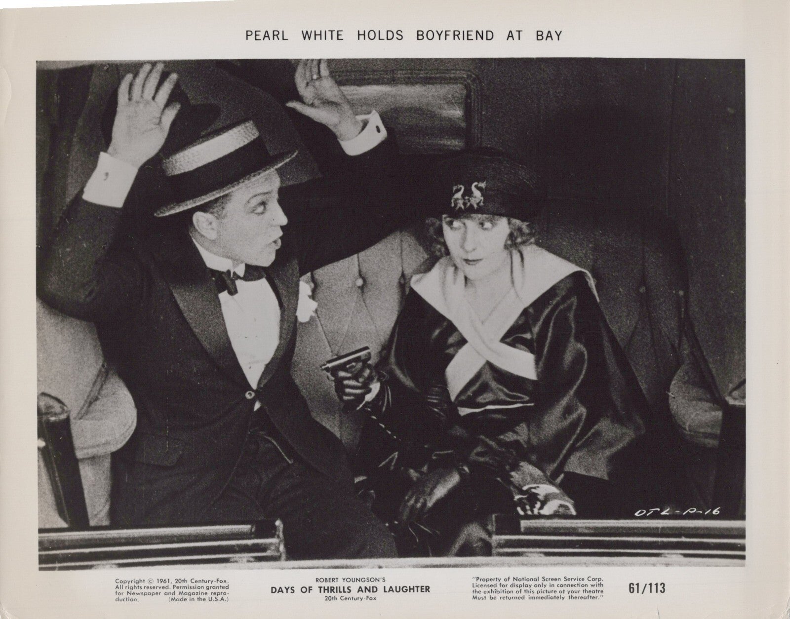 This vintage photograph features Pearl White in Days of Thrills and Laughter (1961). The image is in black and white, with a glossy finish, and is printed on paper. The photograph is an original, not a licensed reprint, and was produced using gelatin-silver printing techniques.